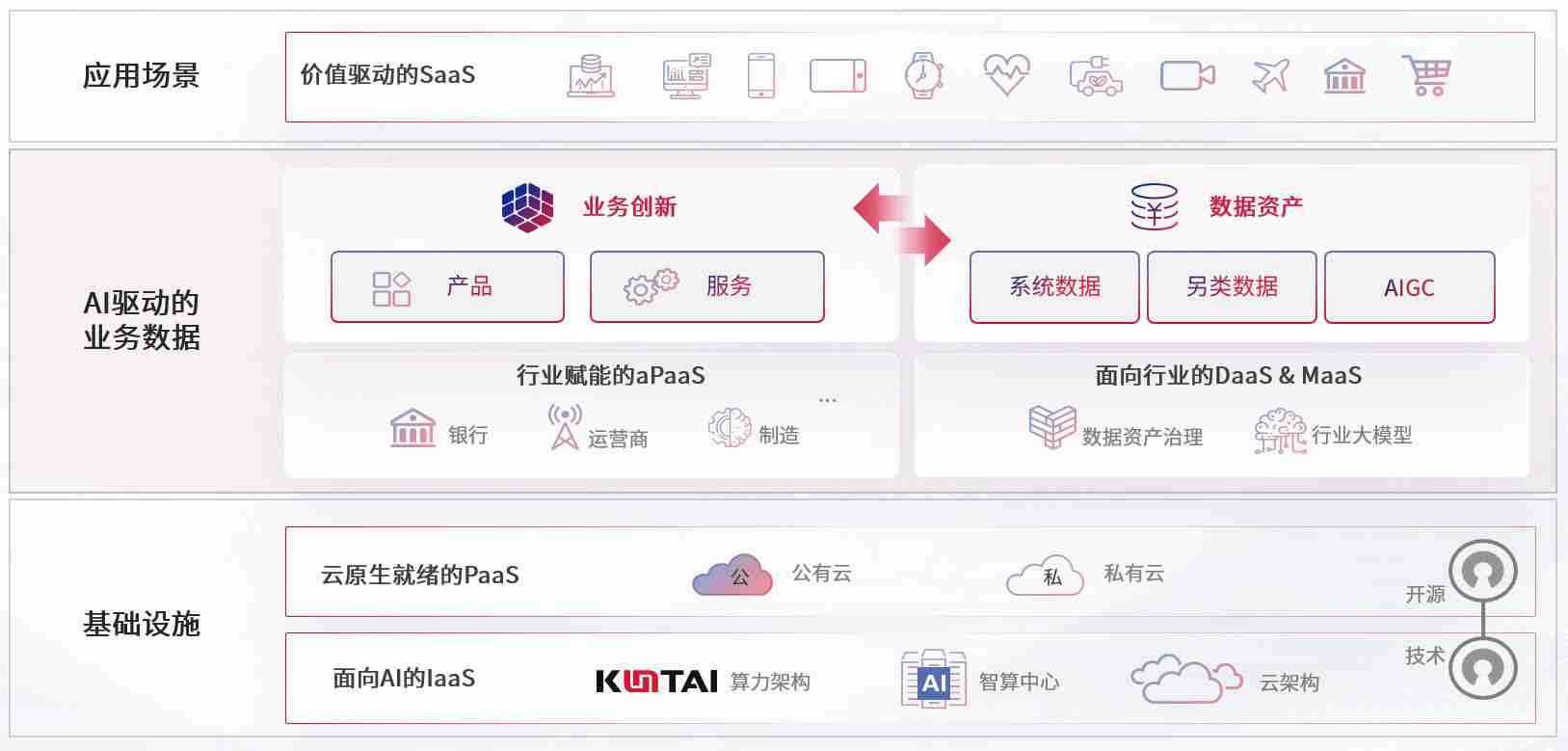 数字时代,,围绕企业数字化转型的关键要素,,GA黄金甲数码开创性的提出数云融合战略和技术体系框架,,着力在云原生、、数字原生、、、AI原生和信创产业上架构产品和服务能力,,,,为处在不同数字化转型阶段的快消零售、、、、汽车、、、金融、、、、医疗、、政企、、教育、、、、运营商等行业客户提供泛在的敏捷IT能力和融合的数据驱动能力,,,构建跨界融合创新的数字业务场景和新业务模式,,,助力企业级客户建立面向未来的核心能力和竞争优势,,全面推动社会的数字化、、智能化转型升级。。